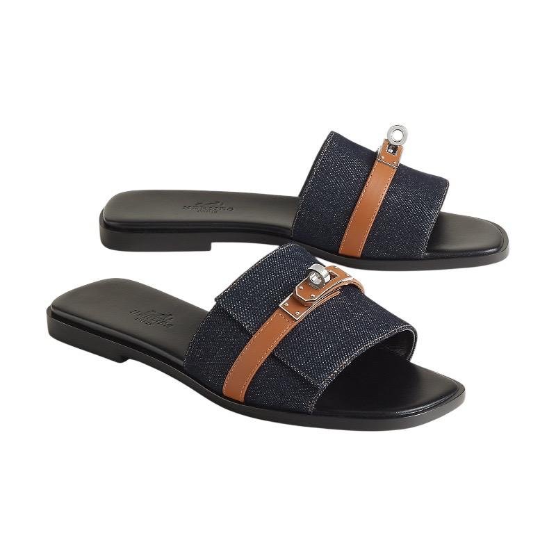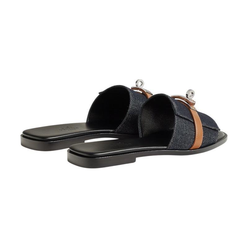 Hermes Giulia Sandal Bleu Brut / Naturel