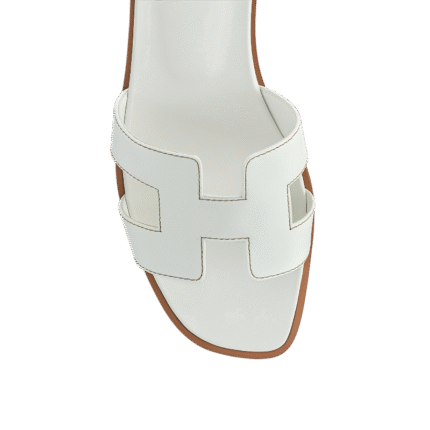 Hermès White Leather Oran Flats Slipper
